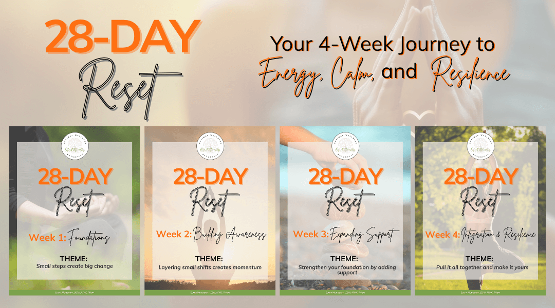 Created by Elana Mundorff, LCSW, AFMC, PHom, the 28-Day Reset combines her background in functional medicine and mental health. Her mission: to help you uncover root causes and create real, sustainable wellness.